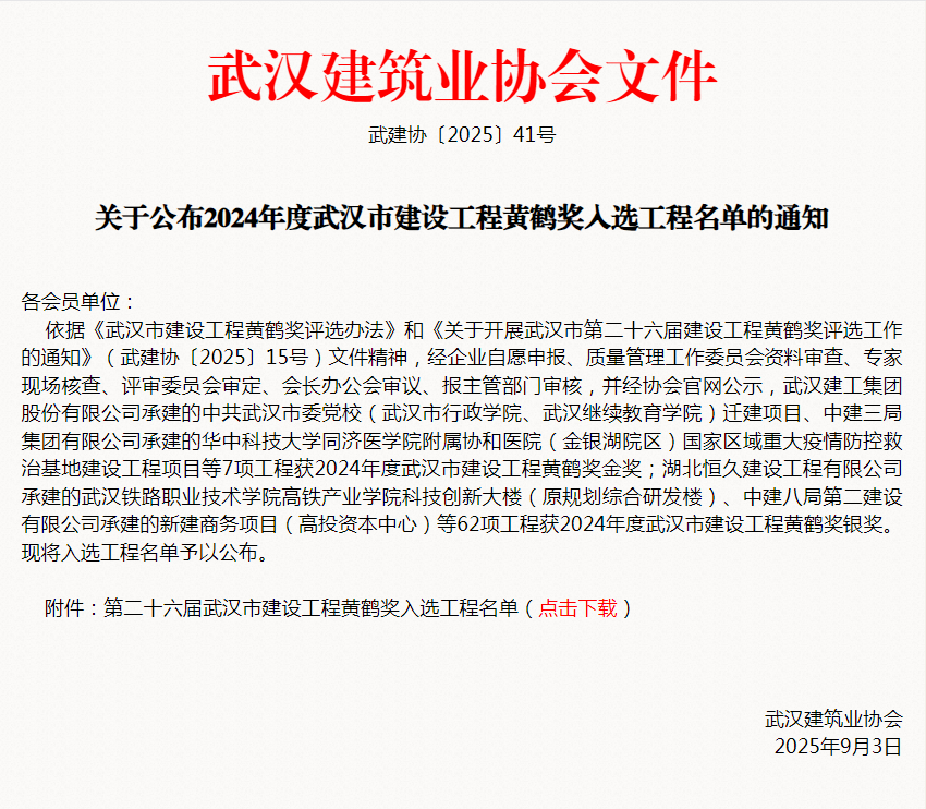 - 2025-09-10再添8項(xiàng)!湖北省建工第五建設(shè)有限公司榮譽(yù)持續(xù)刷新[圖]